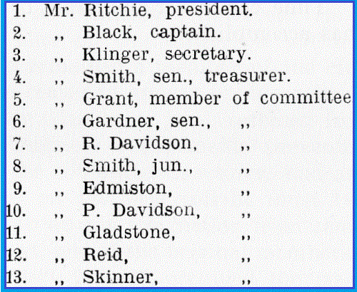 But by then most of the originators of the club had moved on in life, business and therefore from active club participation both on- and off-field. Mungo Ritchie had married in 1870, Lewis Black, as already mentioned, in 1872 with only James Grant following later in 1883. And by early 1871 both Robert Smith and James Klingner had taken themselves first to London before in 1873 the pair oce more would emigrate to North America, the latter dying in Toronto, the former in Chicago.