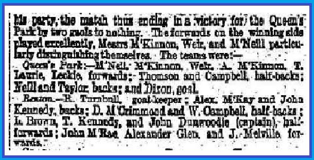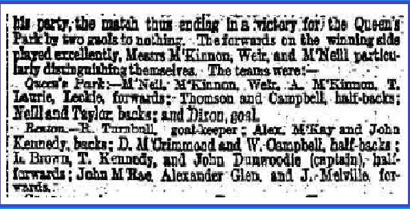 But here again there is something else that is, if anything, more worthy of notice. In that December 1873 encounter with Queen's Park both teams lined up as notionally 2-2-6 but in a contemporary report in The Scotsman no less more detail of Renton's positioning is given.