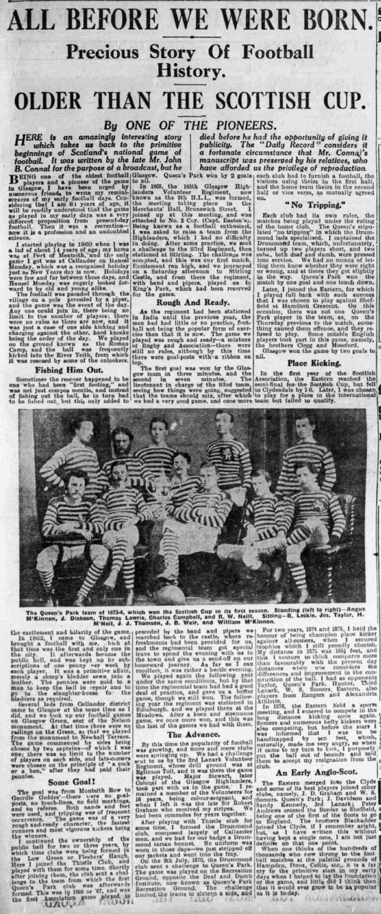 - Organised, non-mob football had existed in Scotland for several hundred years prior to point 1) but was regional, even local.