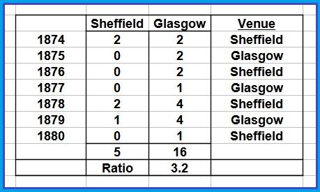 And now finally for this exploration of the the start of football, the initial four decades of the round-ball and Association-games more generally and the first thirty years of our version of it, it is back a little to 1896 and North of the Border once more. From the specifically Scottish view-point there were over those three decades perhaps five not just major but very major dates. 1873 had seen the appearance and first demonstration specifically not in Glasgow but the Vale of Leven of the "Scottish-Game". Then the second had been in 1880-81 with the first use by Queen's Park, perhaps observing the examples set by Sheffield, Darwen and even, most immediately, Blackburn Rovers, of bringing in, of "assembling" perceived talent from sources other than "local". Down South it had been and was with jobs and Scots men to English teams. In Glasgow's Southern Suburbs it was expenses and Scots to Scots. But the principle was basically much the same and in both locations it would lead to full professionalisation, albeit in Scotland it would take a little longer and be accompanied by a deal of Hampden "not me pal". Third had been 1888 with the arrival of a new "Scottish-game" from Renton, so once more specifically not Glasgow but the Vale of Leven, and fourth the creation in 1890-3 of the Scottish League with its initial pretence of amateurism but rapid professionalisation. And the fifth would be 1896 with the beginning of the last throes at club level of "local" teams and at the international level the completion of the same progression to "assembly".