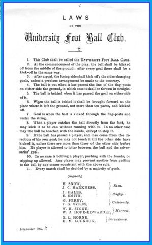 - In 1862 the English John Thring published his pamphlet "The Rules of Foot-ball: The Winter Game. Revised for the use of schools" including his own rules for "The Simplest Game". Note the word "winter.