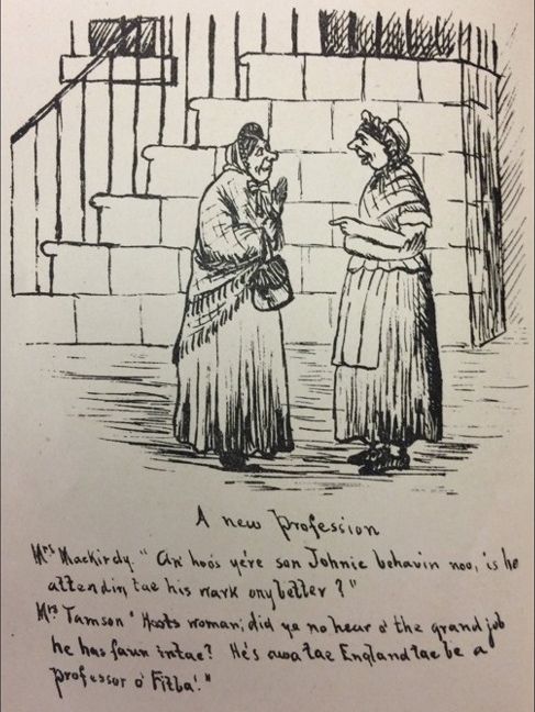 The term seems to have come from a cartoon (See left) published in about 1882. For non-Scots the translation is: