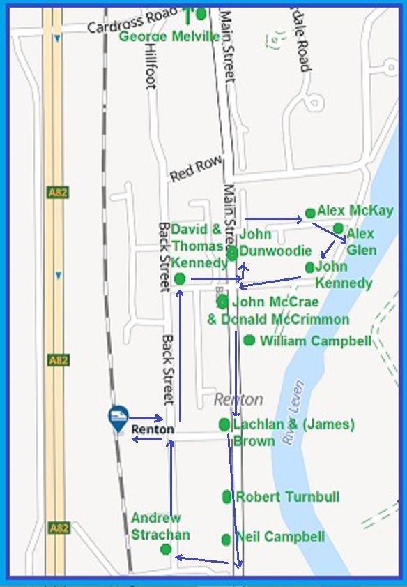 In goal R. Turnbull, Robert Turnbull, was a Block Printer, aged at the time twenty-three or twenty-four and living on Renton's Main St. at number fifty-seven. He was Renton-born too, as was his mother but his father had come from Dunipace, fitba' country. He would marry a Kinloch (see Alex Wylie blow) and his maternal grandmother was a Glen. He would live to eight-two and die in 1930, still locally in Dumbarton. And at full-back there were two presumably powerful men, Alex McKay and John Kennedy, the former a Blacksmith, the latter a Quarry Labourer. McKay was twenty-three or twenty -four, and in 1881 was living on quite possibly the most important street in football history, Thimble, at number sixteen. He had been born in Renton or possibly the village of Buchlyvie in Stirlingshire, so fitba' country once, and again probably die in Dumbarton, in his case at eighty-six. And in the meantime he had married and would raise family in Renton.
